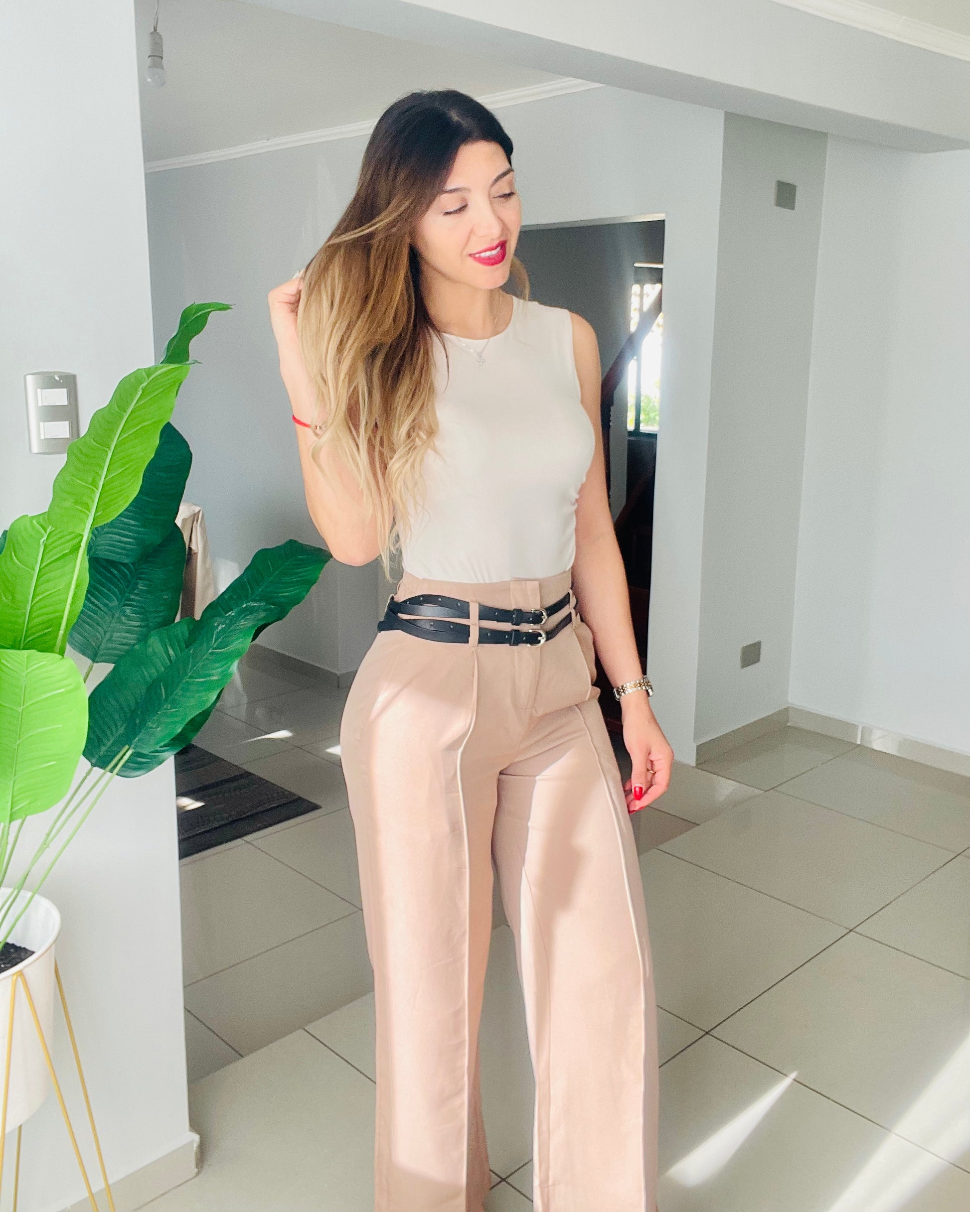 Hermoso y elegante Pantalón formal, tiro alto con cinturones incluidos, disponibles en color beige y camel.