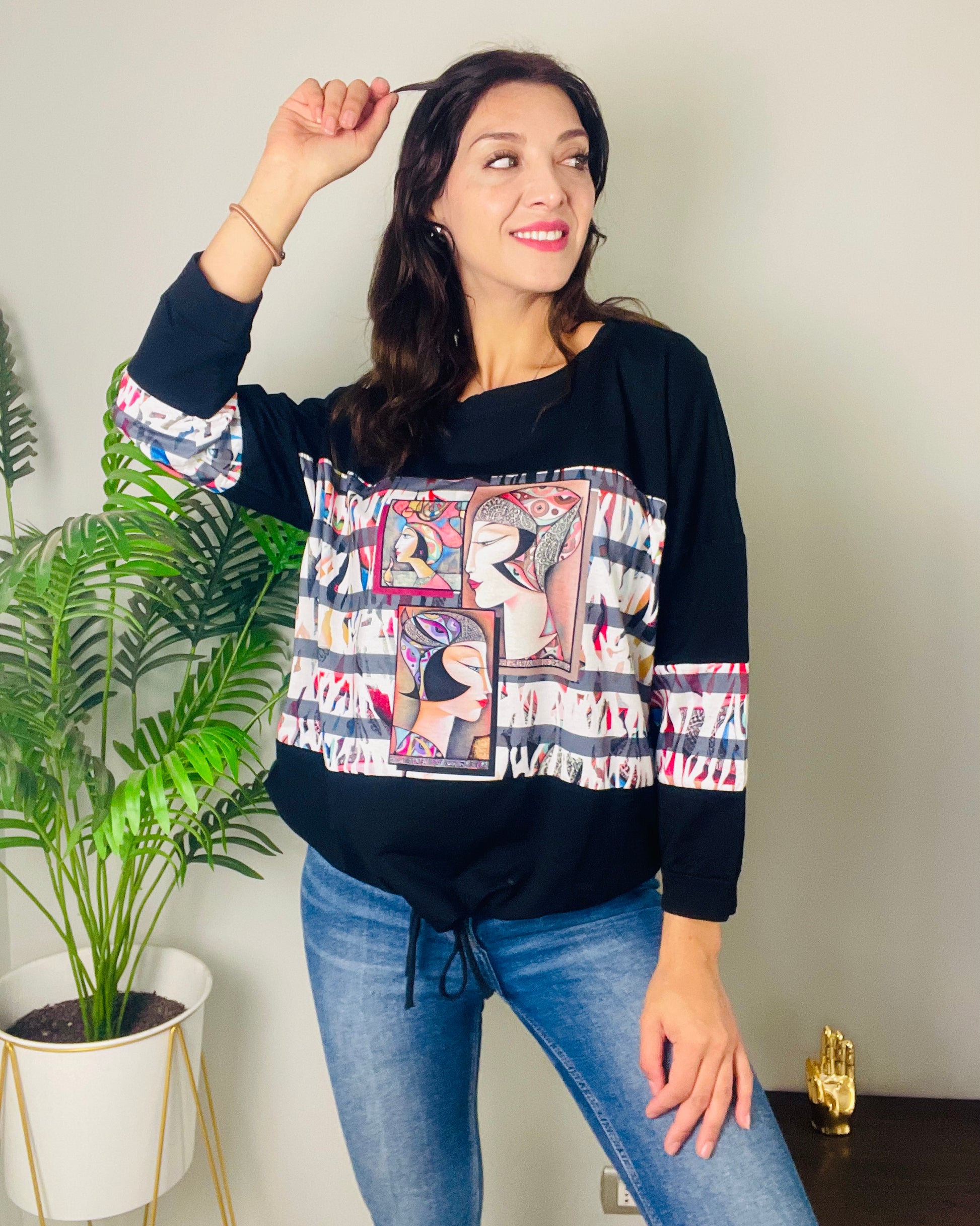 Un diseño único de estampado en modelo Oversize, semiligero, ajustable en parte inferior. Talla única, puede abarcar desde un S hasta un XL-XXL