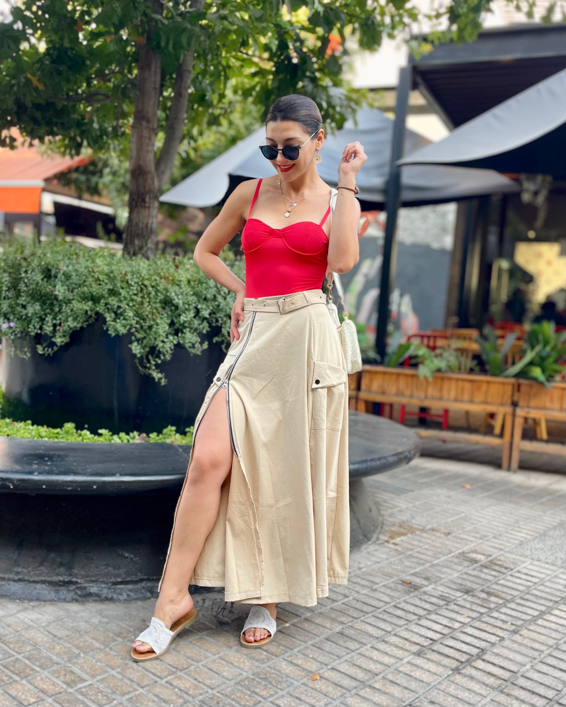 Disponible en color beige y verde olivo.